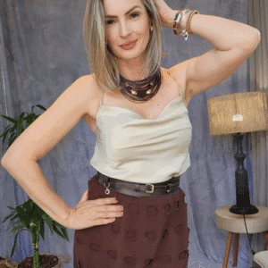 Tamanho P: Serve um manequim 38. Tamanho M: Serve um manequim 40. Tamanho G: Serve um manequim 42.
