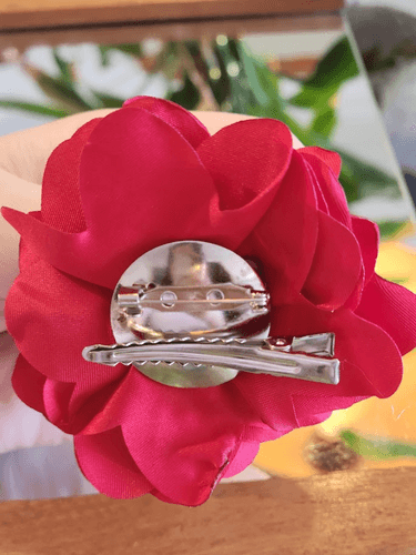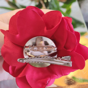 A peça contém bico de pato para cabelo e uma opção para prender na roupa como broche.