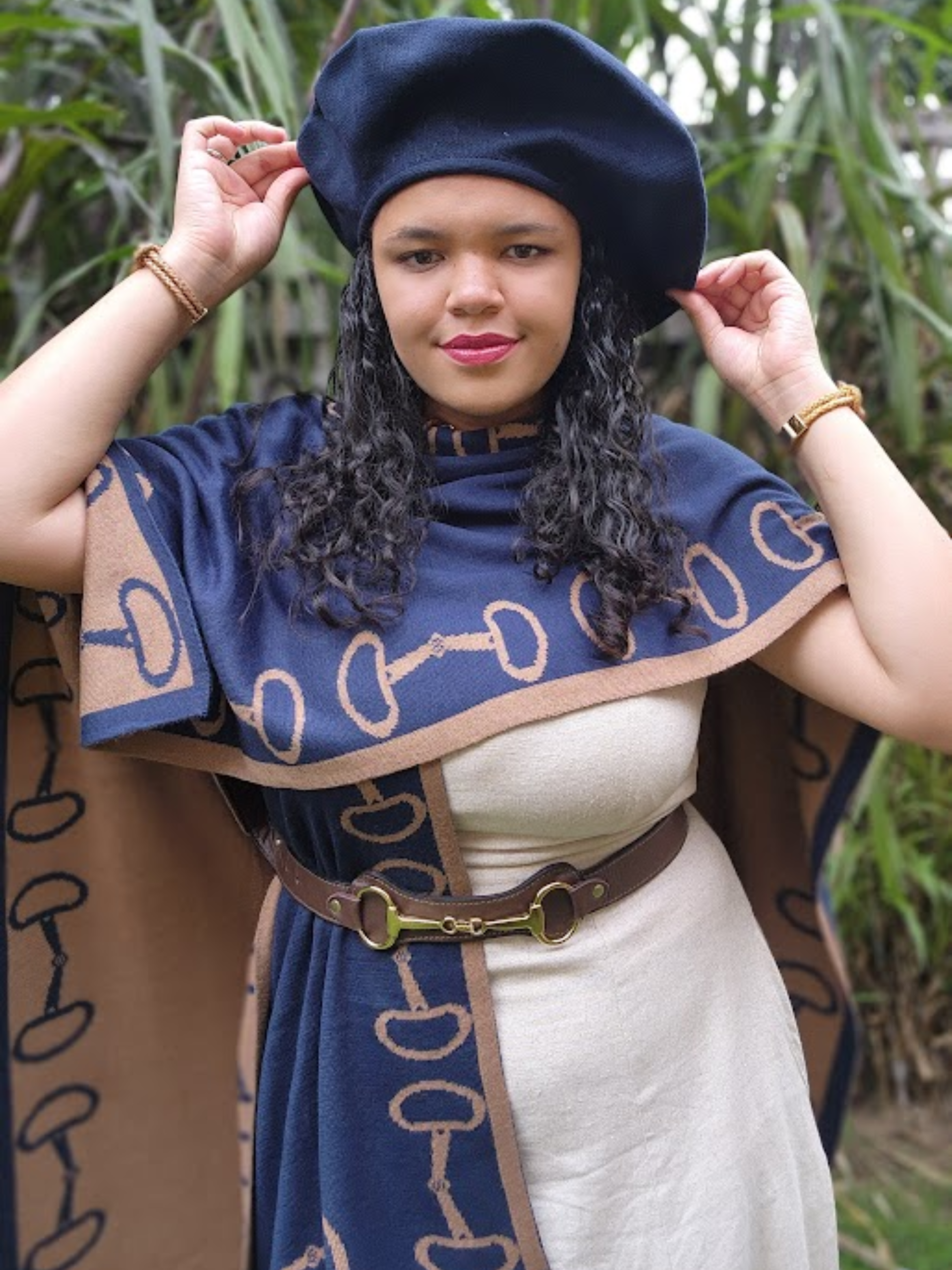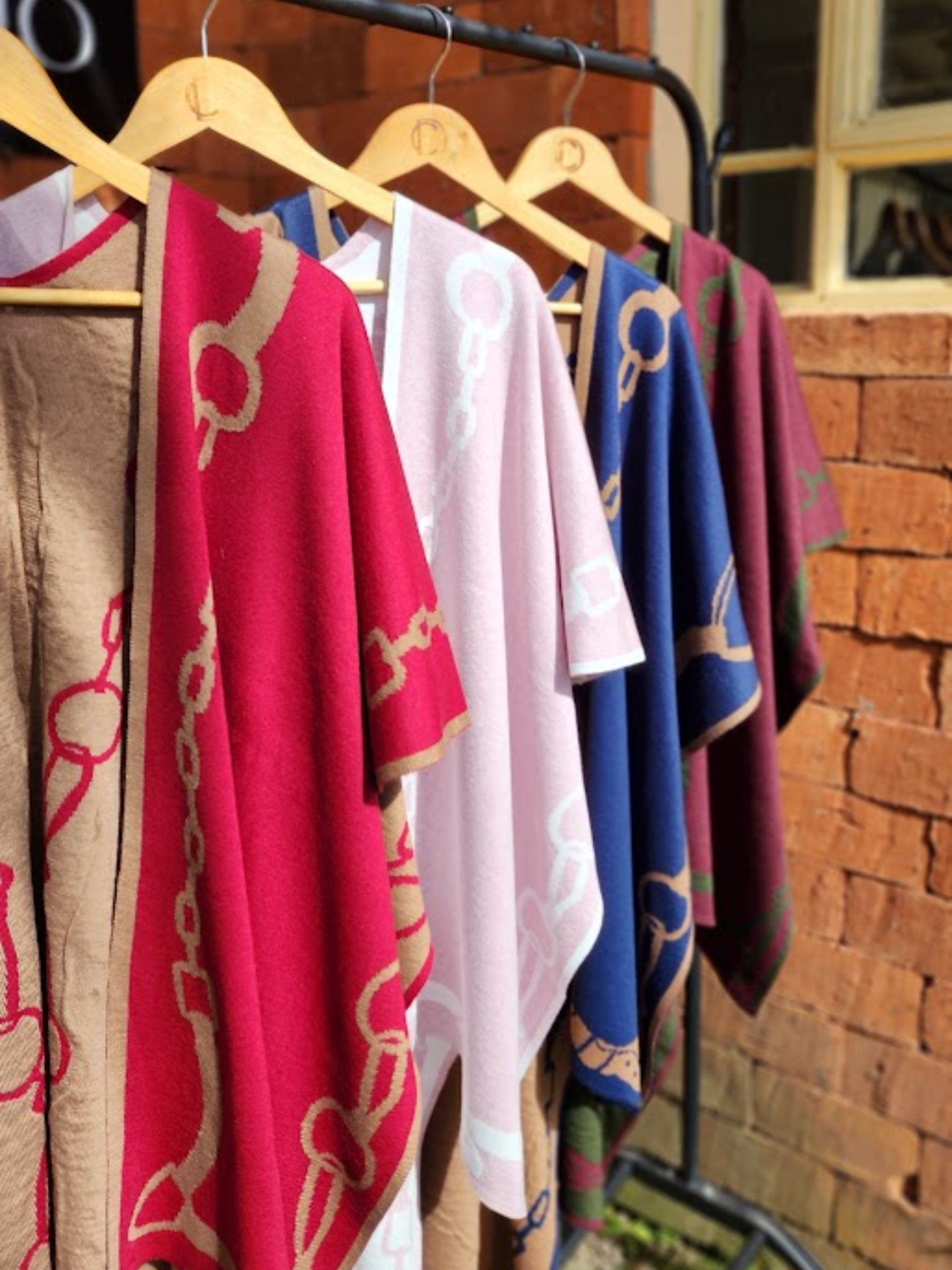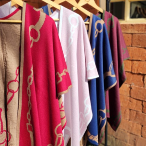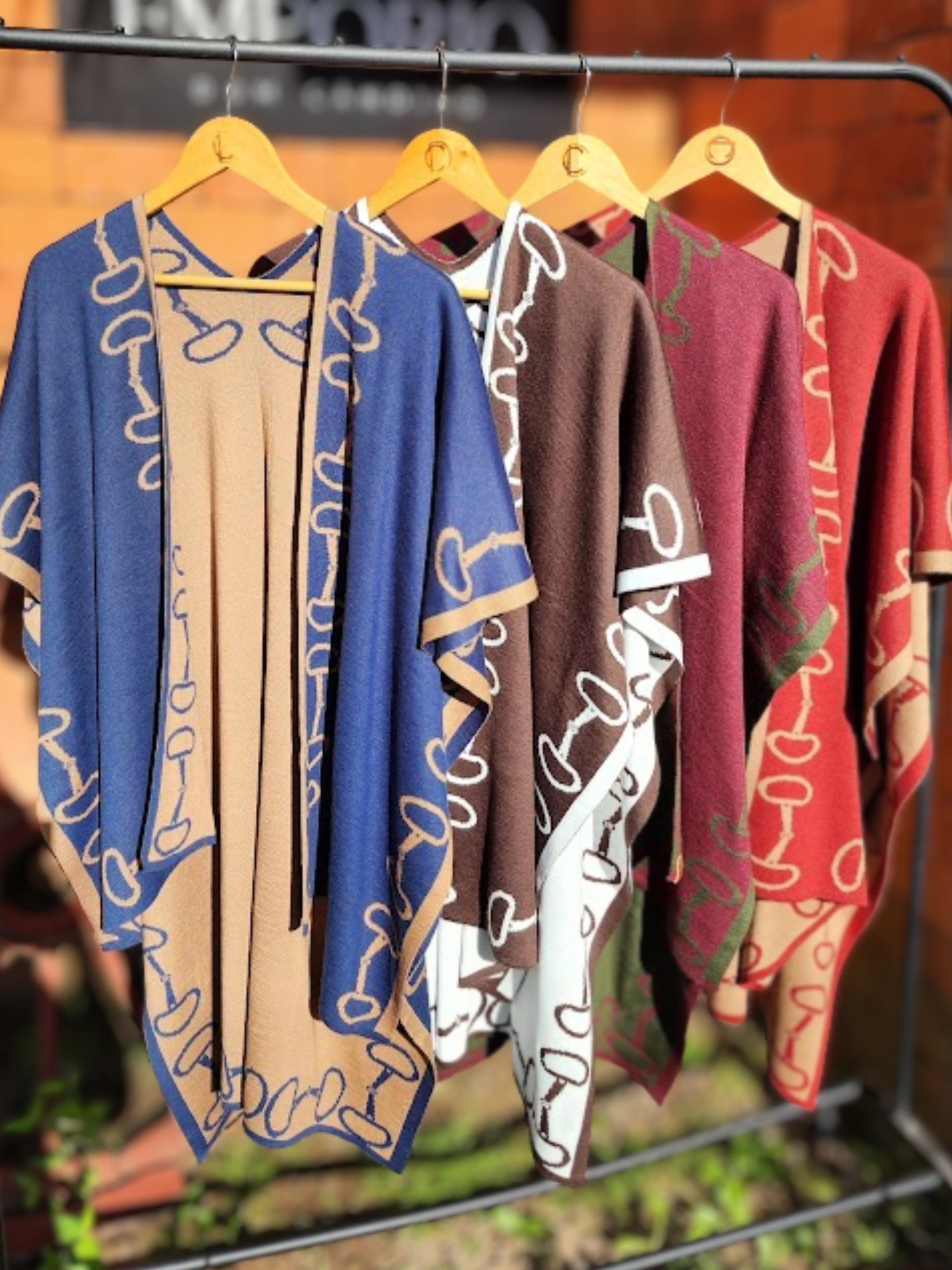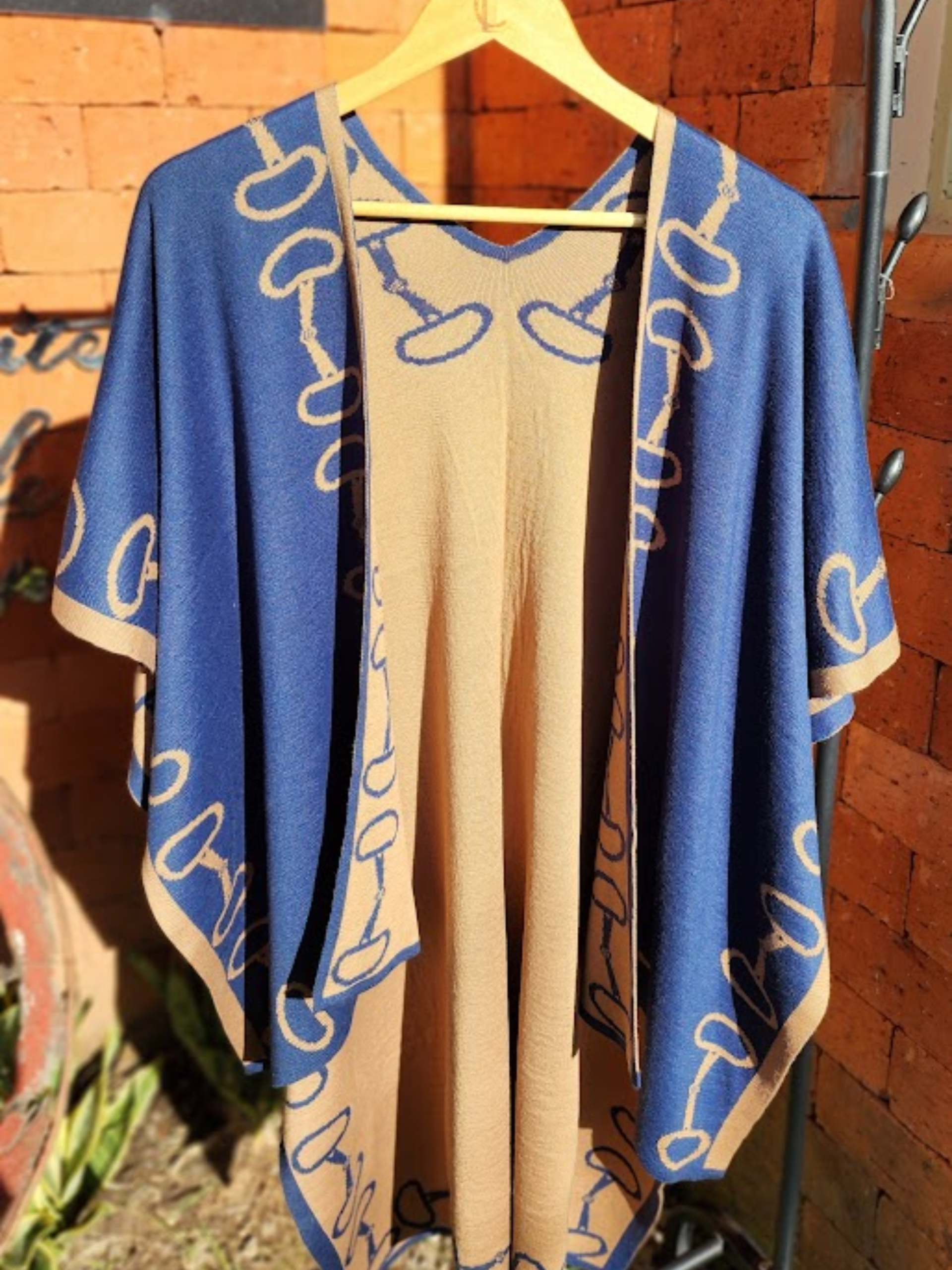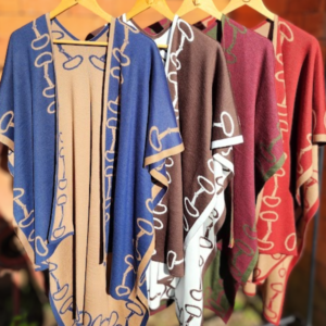 Azul com caramelo, marrom e branco, verde e marsala, vermelho e bege